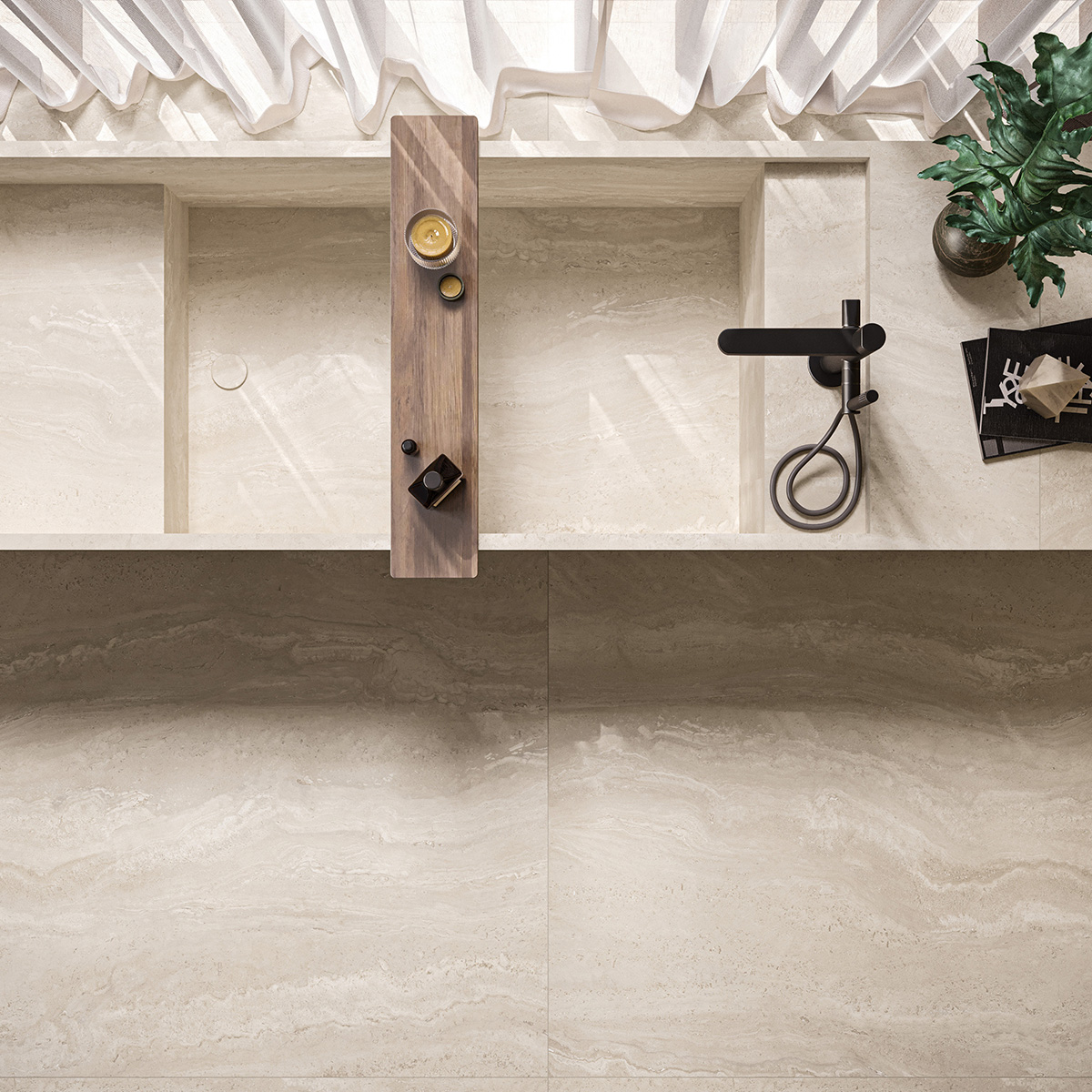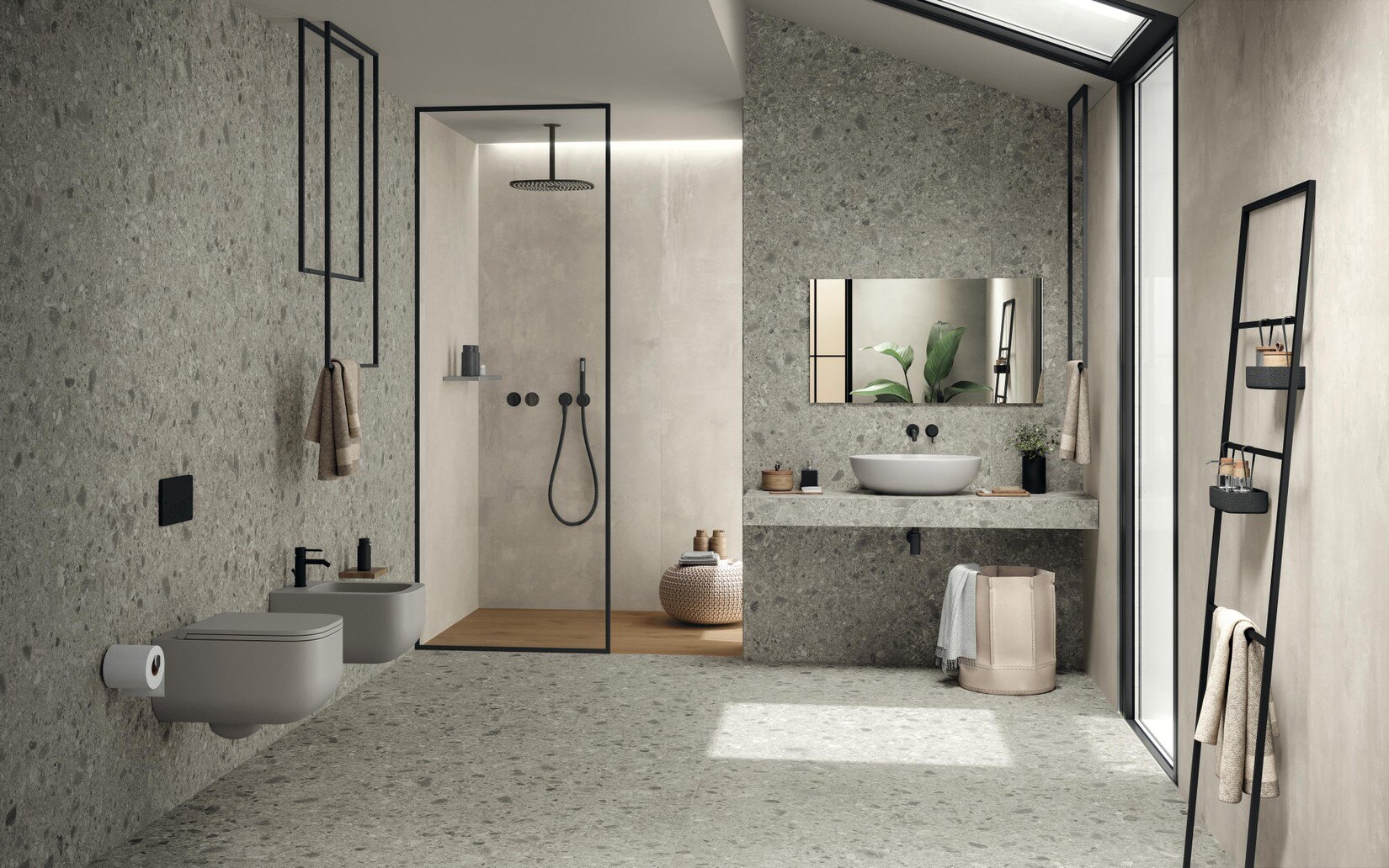 Bij ons vind je de perfecte balans tussen stijl en sfeer. Van speelse terrazzo, kleurrijke kitkat en visgraat wandtegels, tot rustgevende badkamers met zachte aardtinten, strakke betonlook of hotel-chique marmerlook platen. Combineer dit met grootformaat tegels voor luxe en je badkamer wordt een persoonlijke oase die esthetiek en comfort moeiteloos samenbrengt.